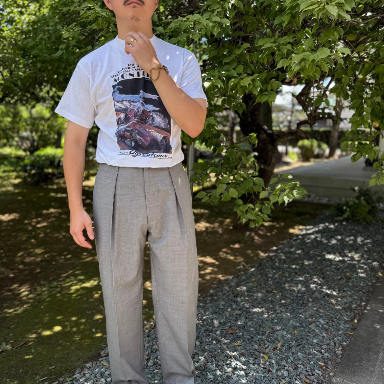 洗練されたグラフィックが、ヴィンテージとはまた違った空気を出しており、綺麗目なジャケットやスラックスなんかとの着こなしも良さそう。