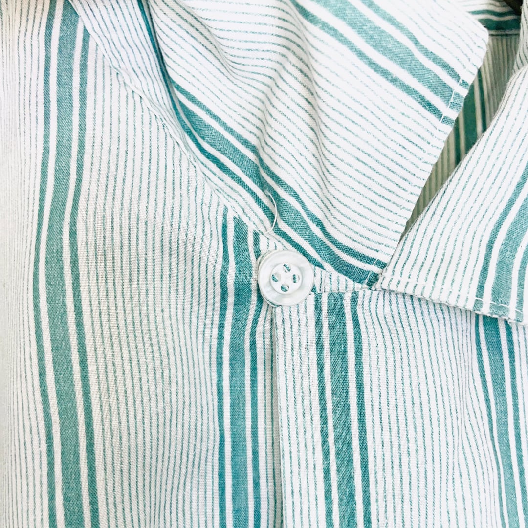 グリーンのマルチストライプが目を引くパジャマシャツ。おそらく70s頃のアイテムではないかと思われます。